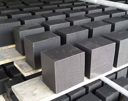 采用煤質活性炭為原材料,經蜂模具壓制,高溫活化燒制而成。蜂窩活性炭具有比較面積大,通孔阻力小,微孔發達,高吸附容量,使用壽命長等特點,在空氣污染治理中普遍應用。選用萬江環保蜂窩活性炭吸附法,即廢氣與具有大表面的多孔性活性炭接觸,廢氣中的污染物被吸附分解,從而起到凈化作用。